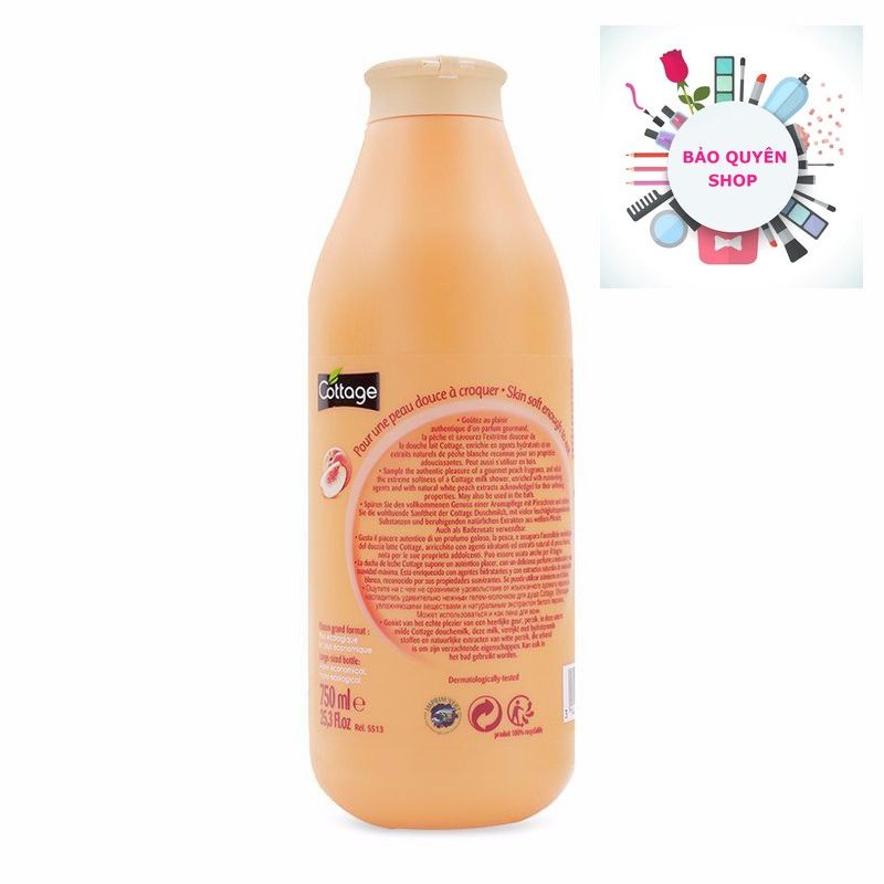 Sữa tắm dạng gel làm mịn da Cottage – White Peach – Moisturizing Shower Gel & Bath Milk 750mL